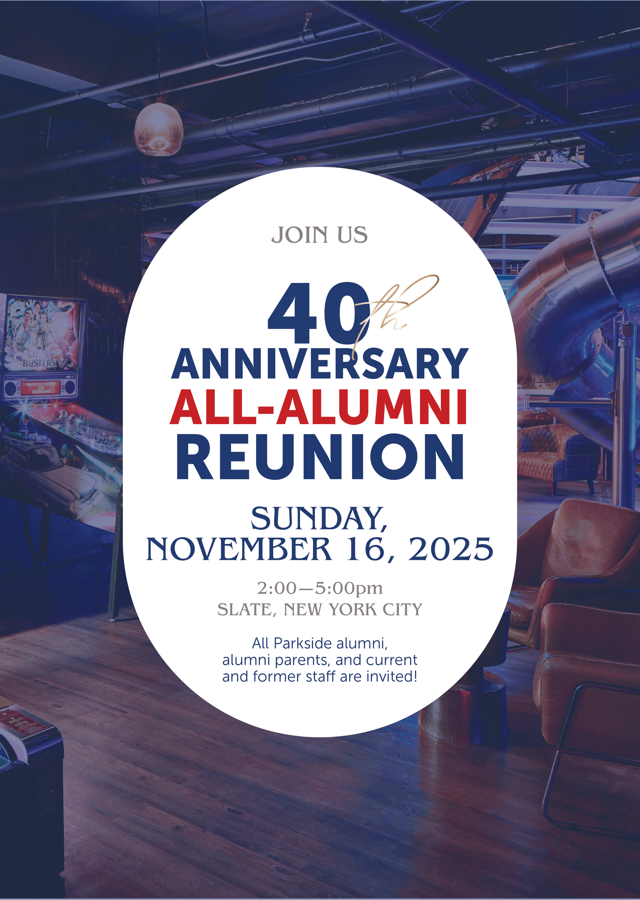Join us for an unforgettable afternoon of fun, games, and connection as we celebrate Parkside’s 40th Anniversary! Think giant slide, bowling, skee-ball, ping pong, board games, and more—all set in one of New York City’s most lively, interactive venues. This special reunion is open to all alumni: students, parents, teachers, therapists, and staff.